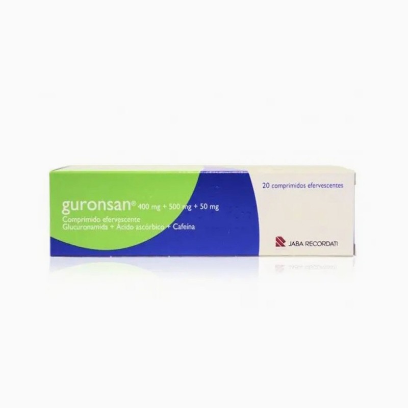 Guronsan contém cafeína (estimulante psíquico), glucuronamida (destoxicante) e ácido ascórbico (vitamina C), sendo indicado no alívio dos sintomas de intoxicação (por exemplo, situações de consumo excessivo de álcool) e intolerâncias medicamentosas. A glucuronamida, favorecendo e aumentando a eliminação das toxinas endógenas e exógenas e o ácido ascórbico ao permitir a reposição dos níveis de vitamina C nos valores adequados, em situações que levam a uma diminuição desses níveis, concretamente situações infecciosas diversas, intoxicações, alcoolismo, tabagismo, contribuem para que o Guronsan seja um destoxicante particularmente importante, muito usado em grande número de situações.